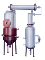 2.為克服濃縮罐頂二次蒸汽在未進入冷凝器前被冷凝而返回罐內的缺點。本設備將冷凝器改為斜臥式;